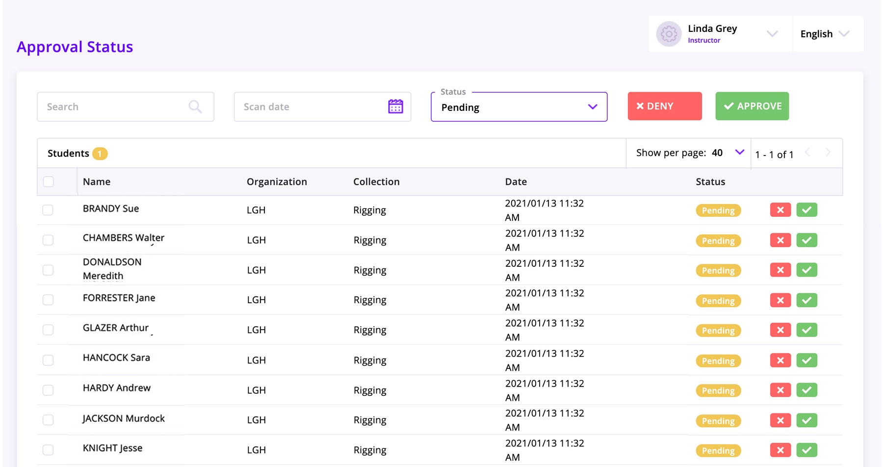 En un clic, vous pouvez approuver ou refuser chaque accès, depuis la section "Approbations" de SENAR Studio.