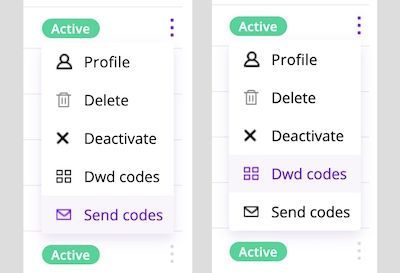 Ces deux options sont disponibles en cliquant sur le bouton à 3 points situé à la fin de chaque ligne "utilisateur" :